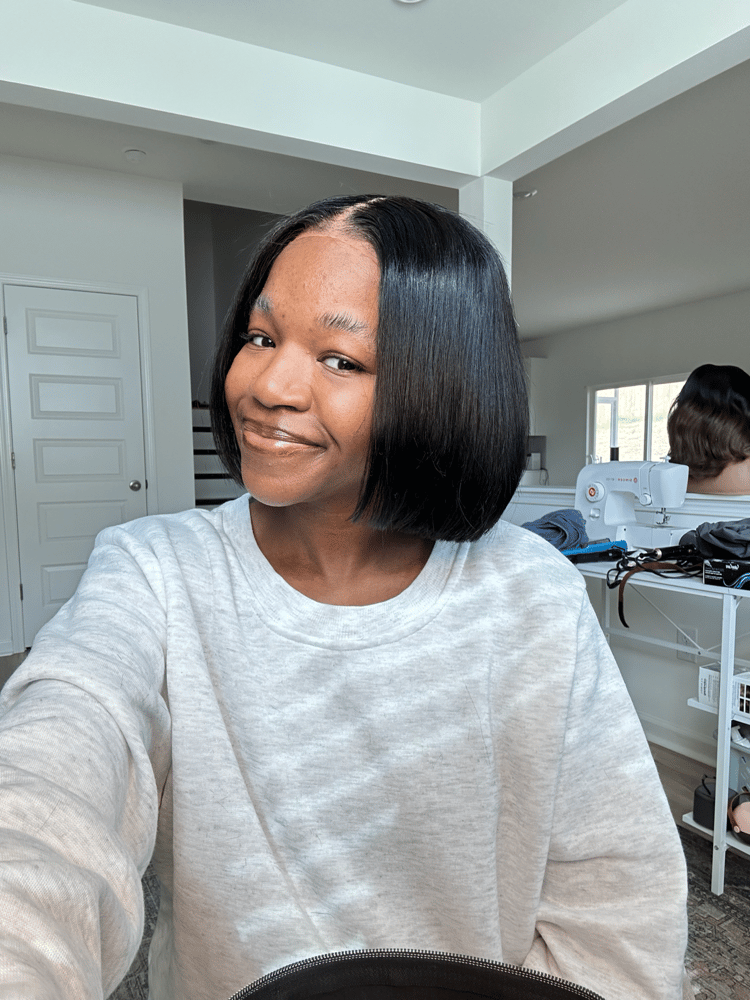 A sleek, precision-cut bob designed for the woman who loves a clean, elevated look. This custom unit features a smooth finish with a natural flow that frames the face beautifully from every angle.