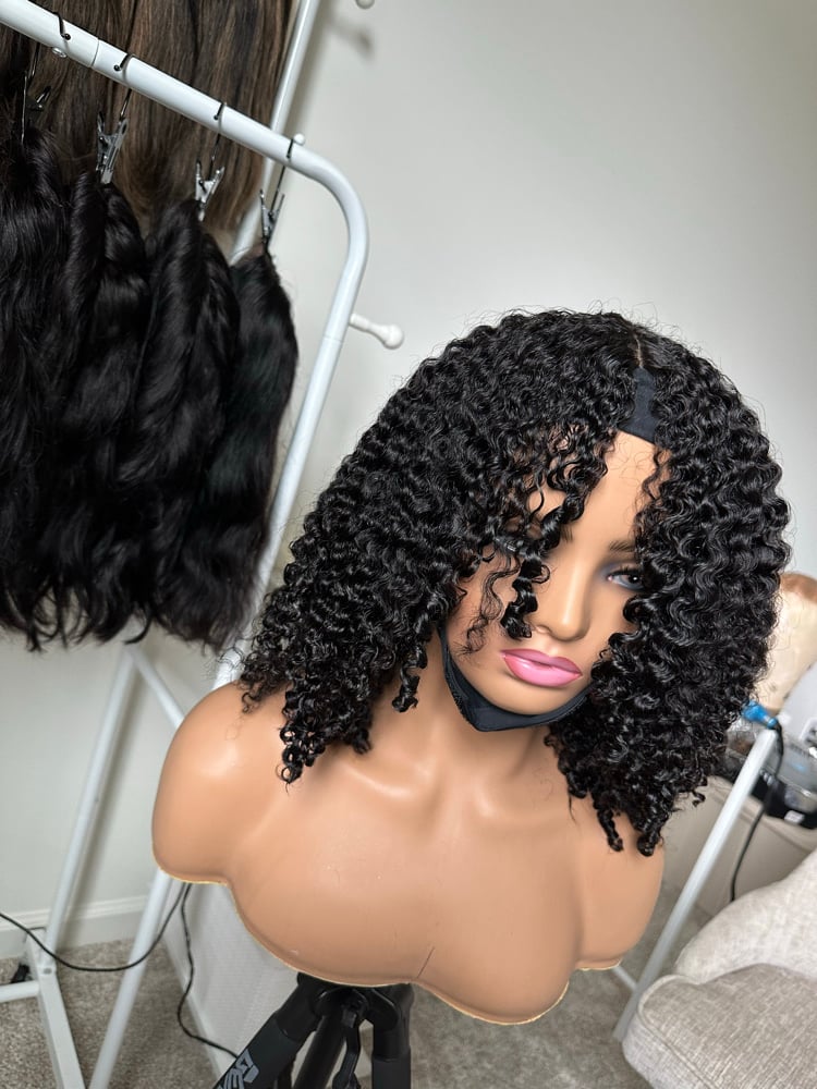A beautifully defined kinky curly unit designed for easy, everyday wear. This headband wig gives you fullness, texture, and natural volume without the need for lace or glue just throw on and go!